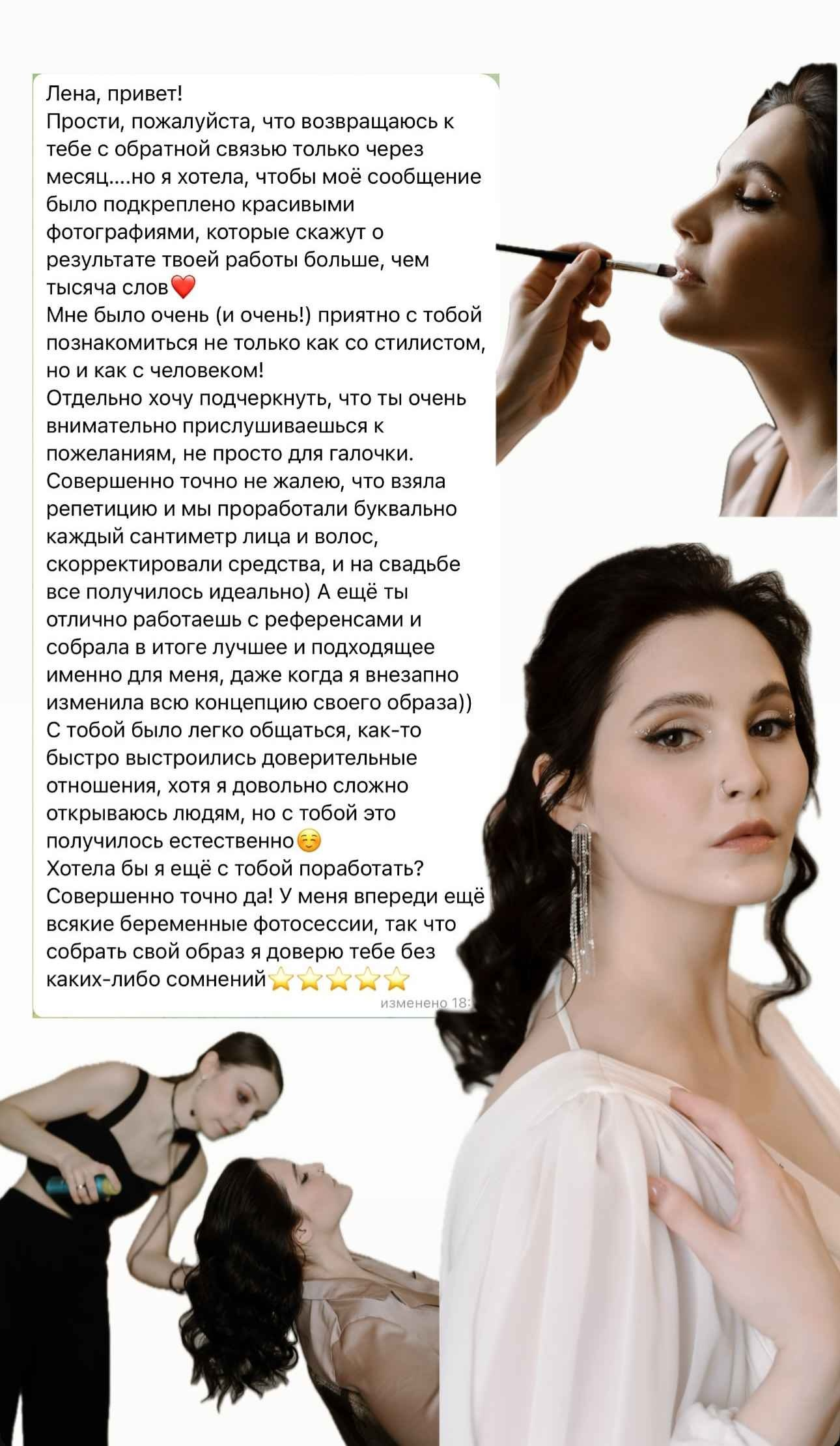 Сопровождение невесты для поддержания макияжа и прически в идеальном состоянии исмены образов — 4000 руб./час