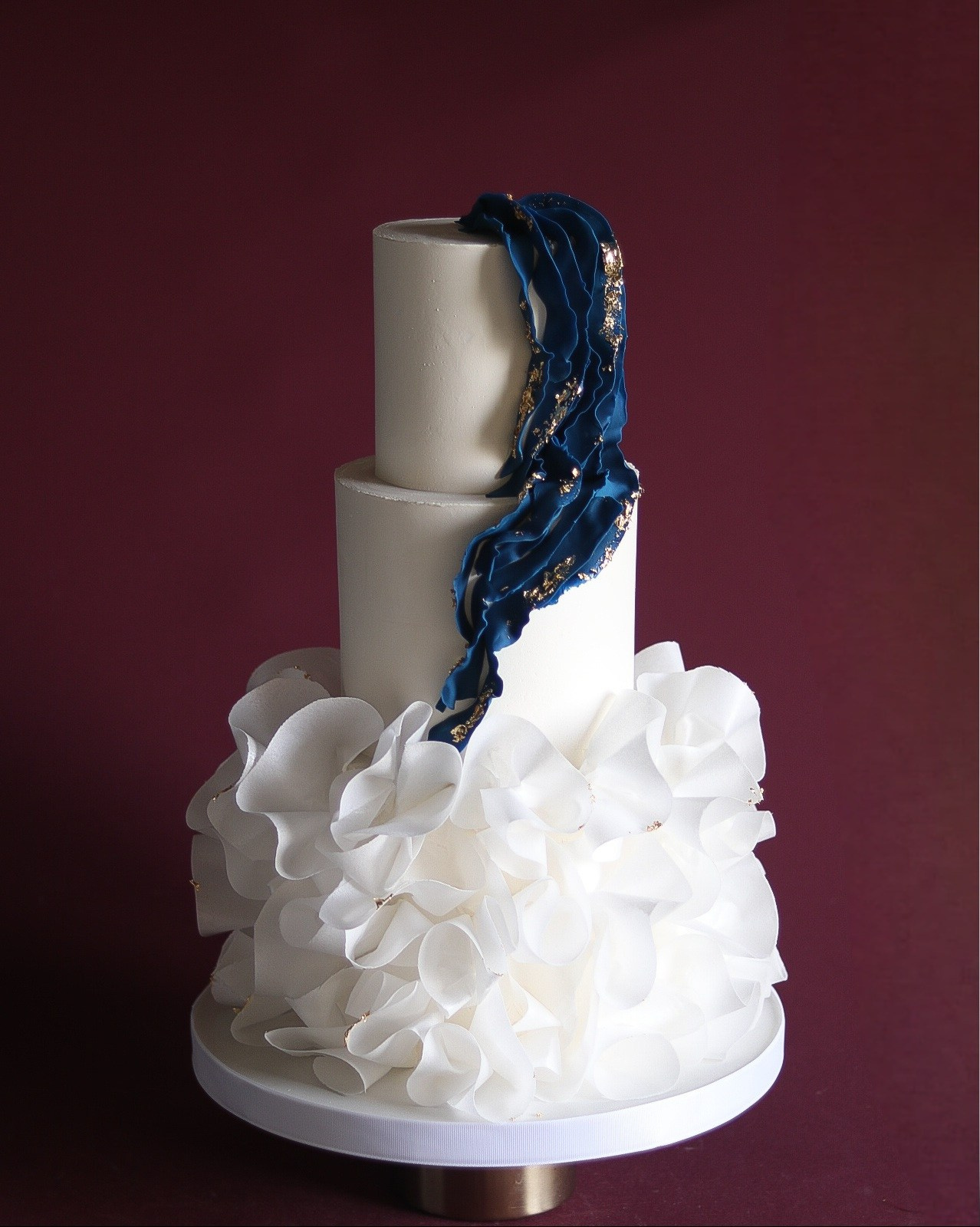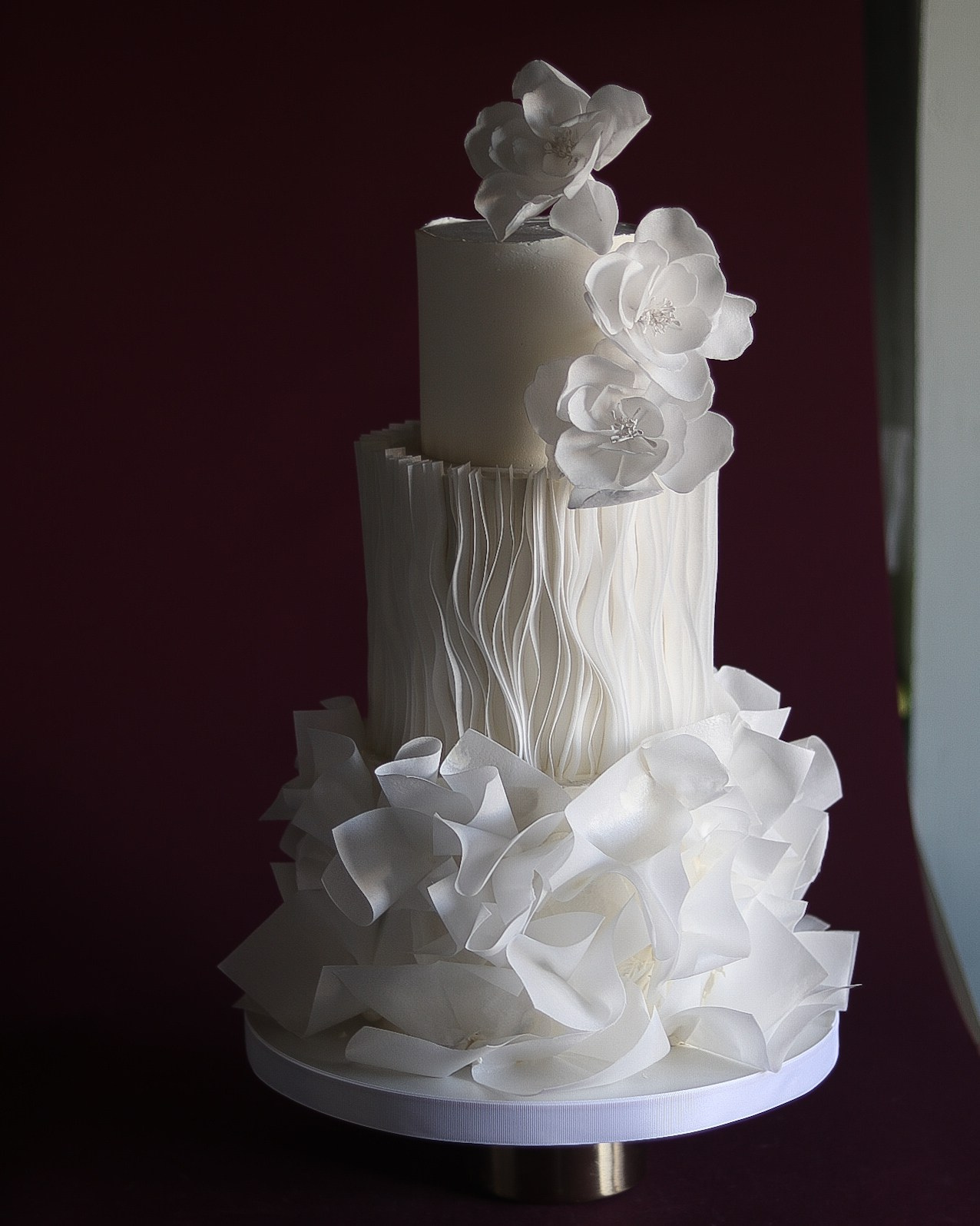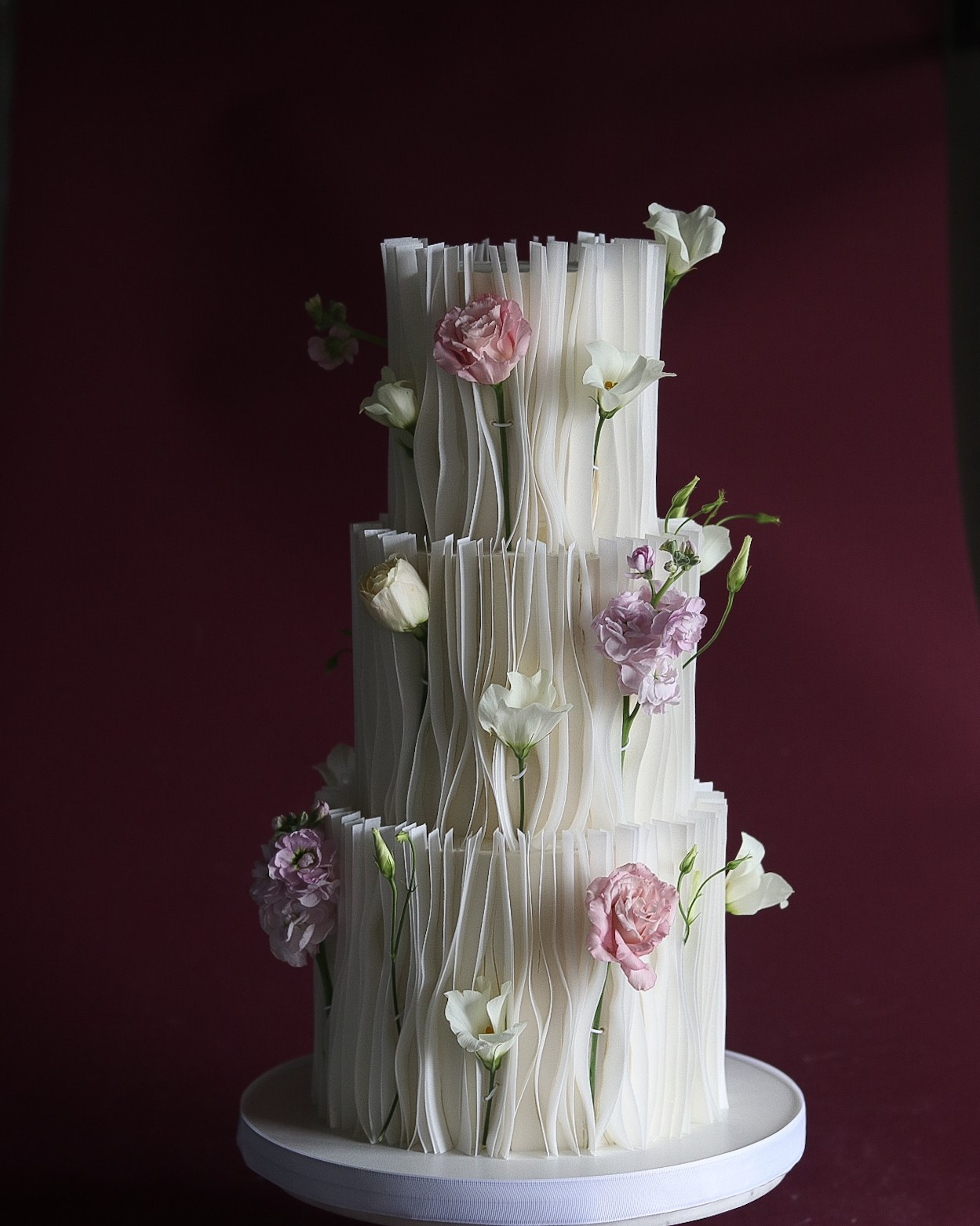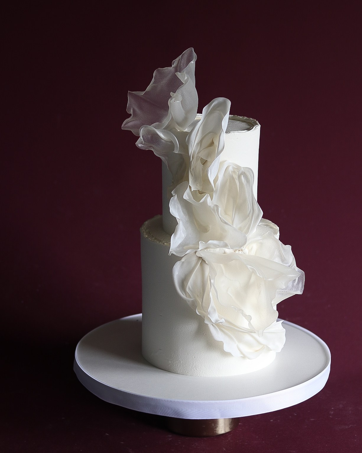 — Декор в стиле ламбет в один цвет с тортом (рюши из крема на основе белого шоколада);