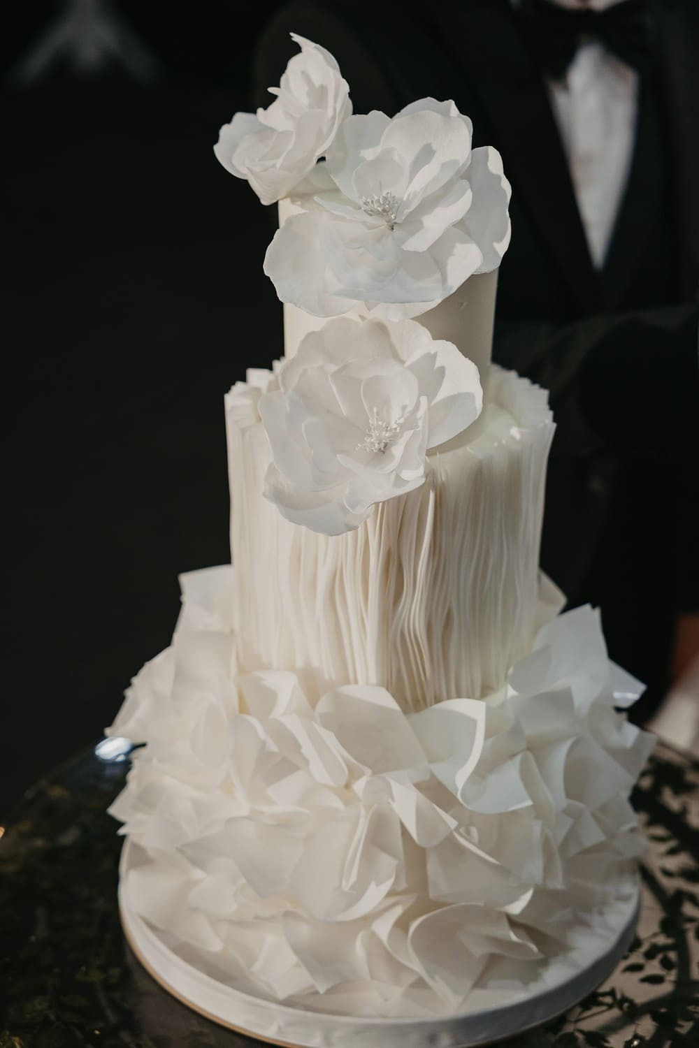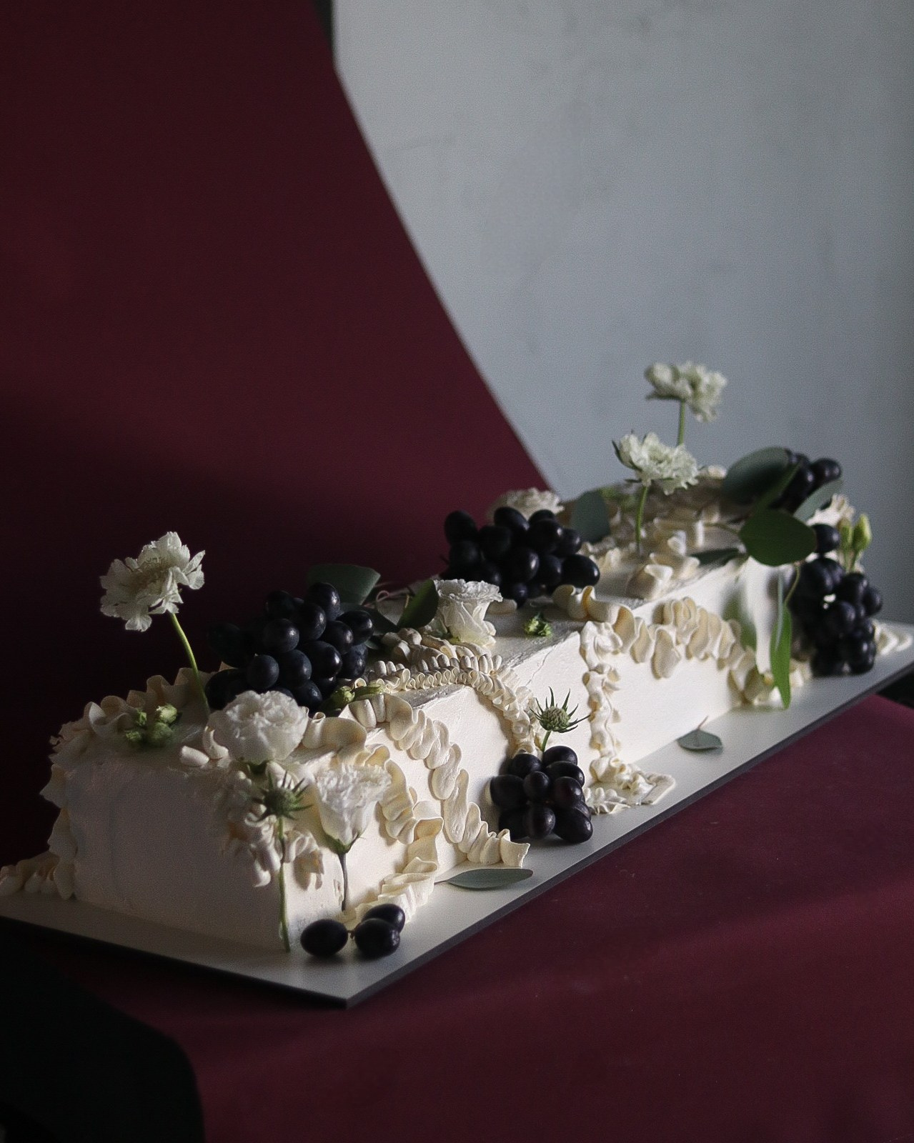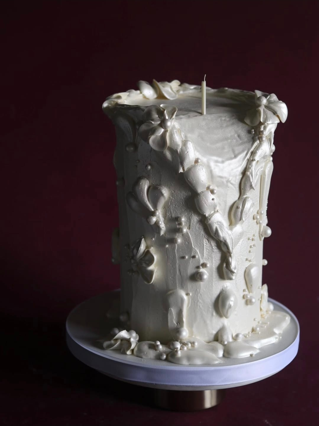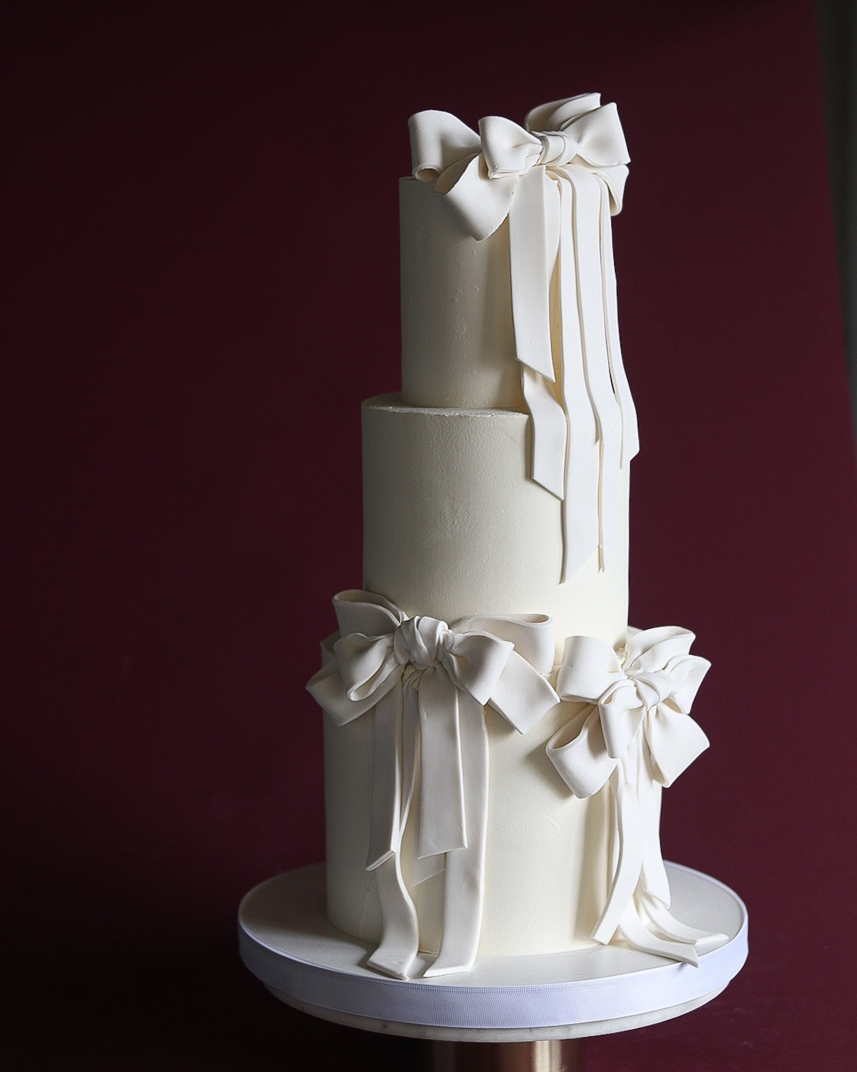 — Декор в стиле ламбет в один цвет с тортом (рюши из крема на основе белого шоколада);