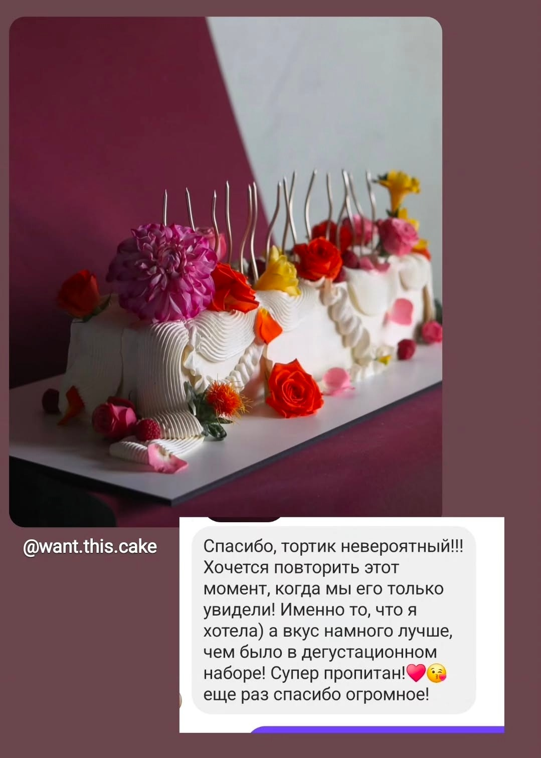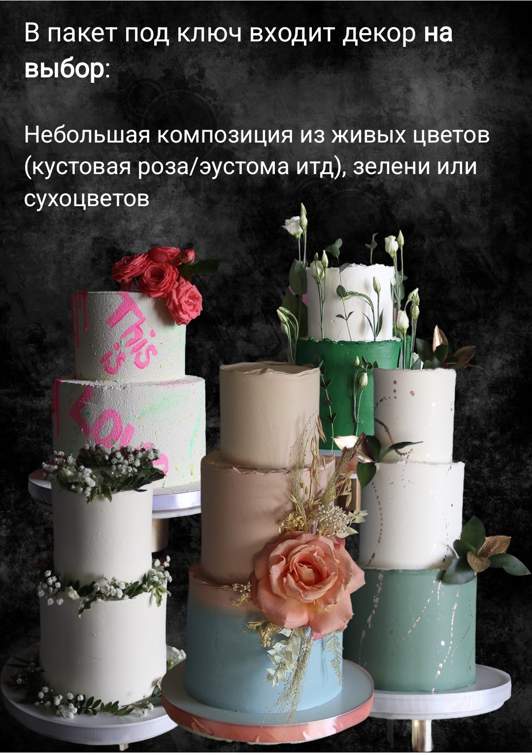 Форма и размер: от ровного высокого торта до трендового длинного или пирогаогромного диаметра. Я могу воплотить любые ваши идеи.