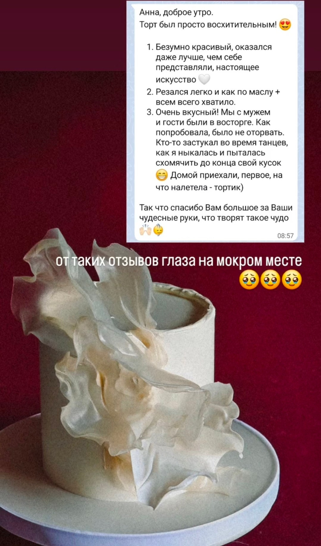 Я создаю торты, которые украшают свадьбы и становятся частью незабываемых воспоминаний.