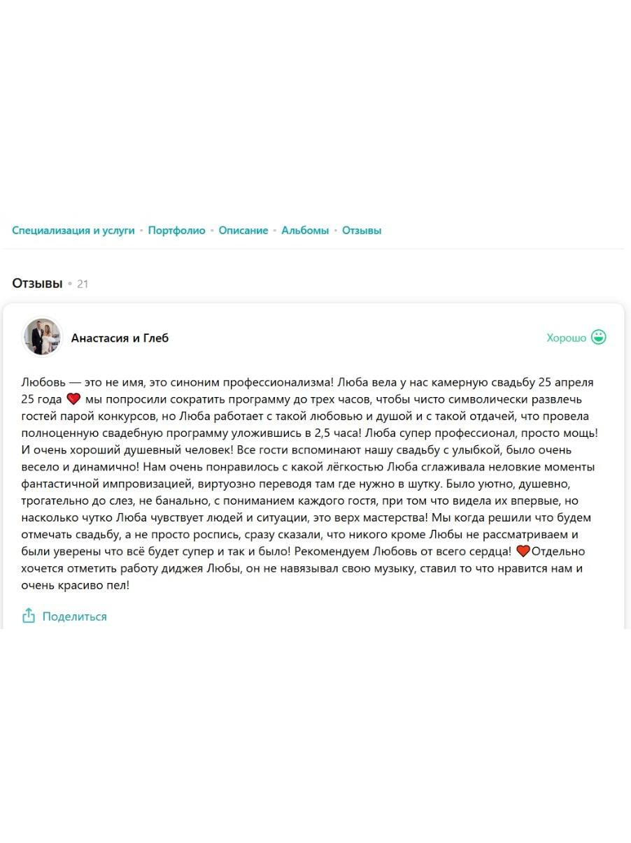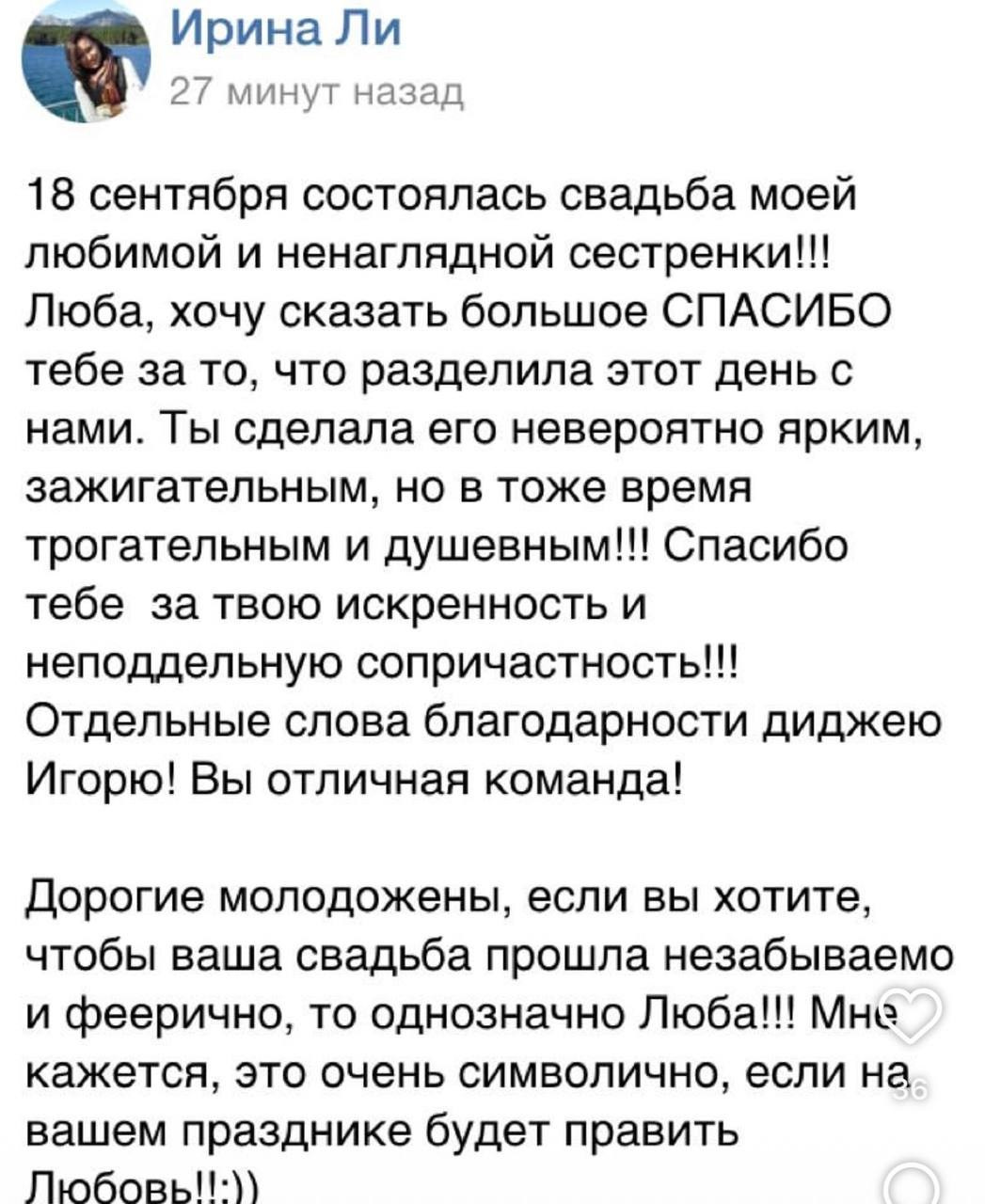 — Неограниченное число встреч с ведущей на комфортной для молодоженов территории